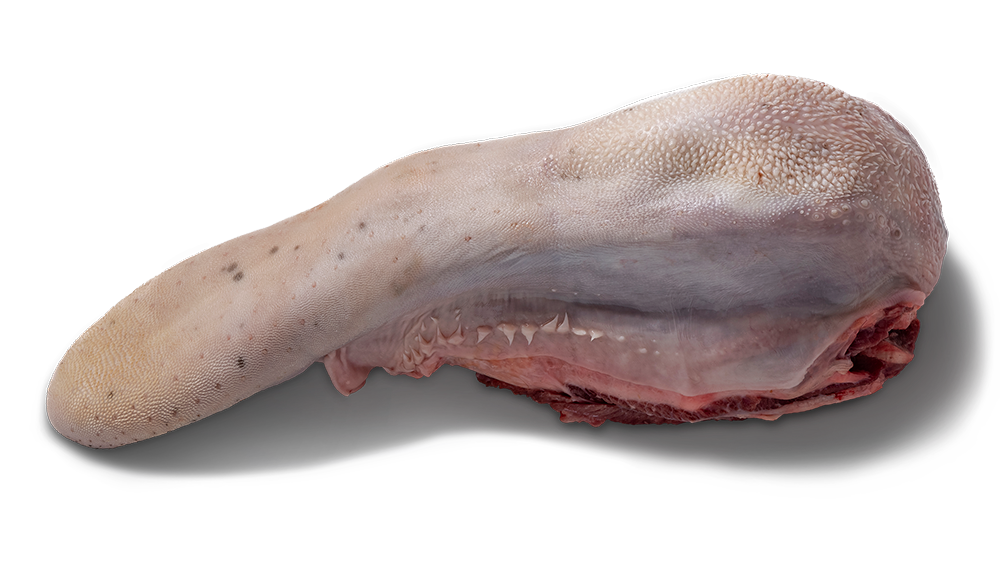 It is prepared removing hyoid bone , fat trim, tongue root and mantaining lingual epithelium intact. It may have different colorations (White, black, spotted). Must be clean, without digestivecontent.